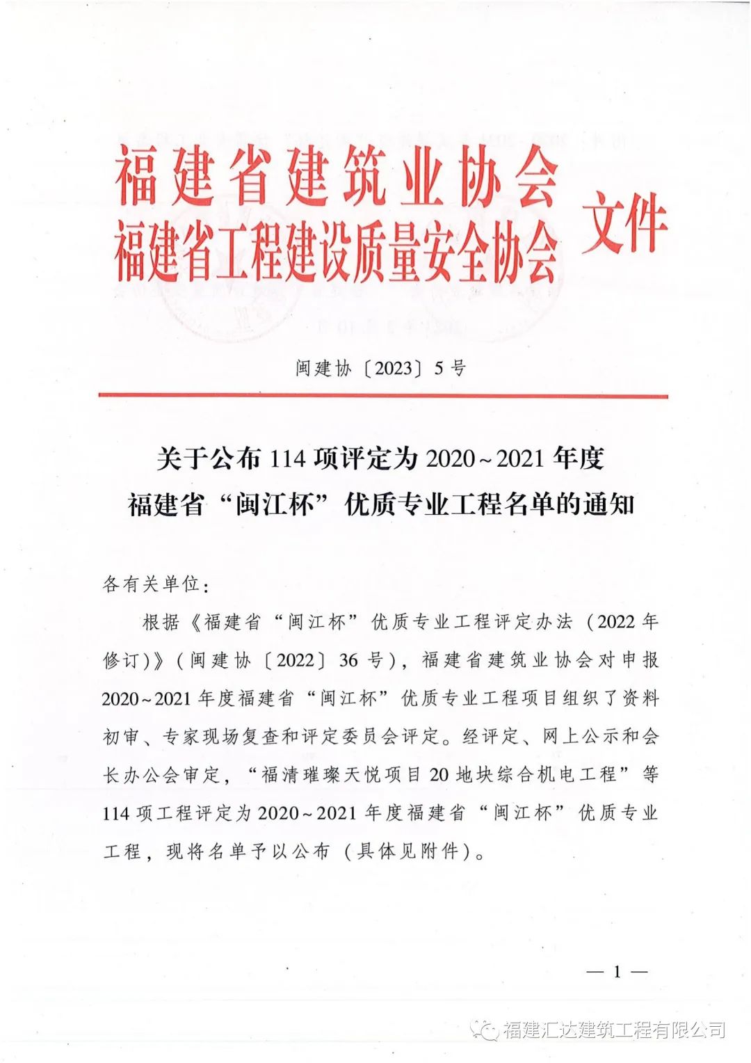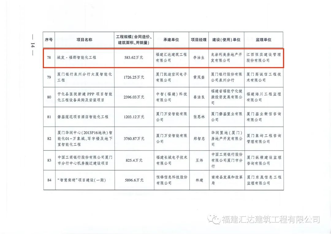 荣耀体育(中国)承建的城发·福郡智能化项目喜获“闽江杯”优质专业工程